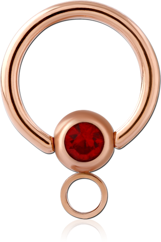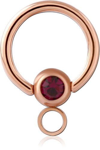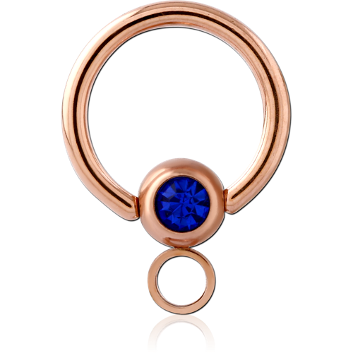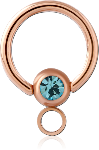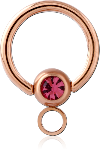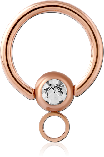 ROSE GOLD PVD COATED SURGICAL STEEL GRADE 316L VALUE JEWELED BALL CLOSURE RING WITH HORIZONTAL HOOP