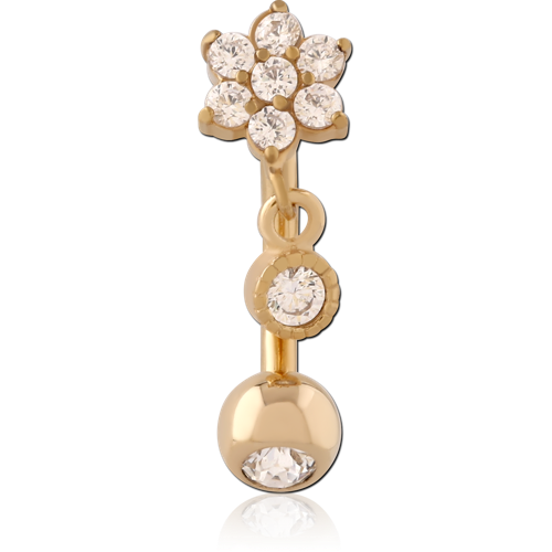 GOLD PVD 18K COATED SURGICAL STEEL GRADE 316L JEWELED FANCY CURVED MICRO BARBELL