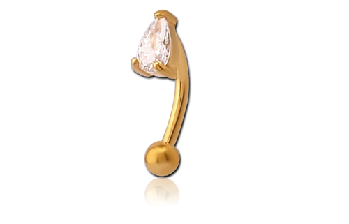 GOLD PVD 18K COATED SURGICAL STEEL GRADE 316L JEWELED CURVED MICRO BARBELL - TEAR DROP