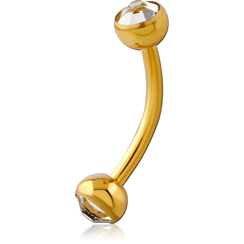 GOLD PVD COATED SURGICAL STEEL GRADE 316L DOUBLE FLAT STONE CRYSTAL JEWELED CURVED MICRO BARBELL