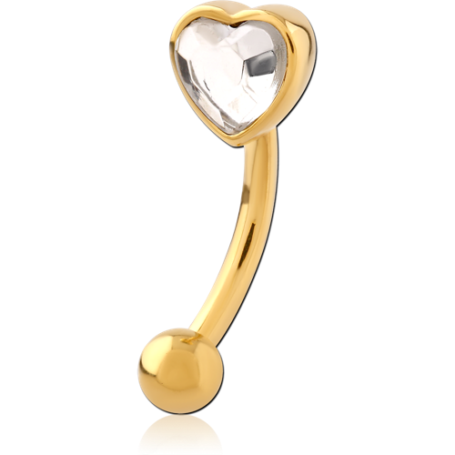 GOLD PVD COATED SURGICAL STEEL GRADE 316L JEWELED CURVED MICRO BARBELL - HEART
