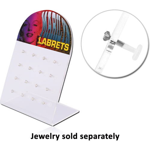 BOX OF 16 POLYMER INTERNAL LABRET WITH STERLING 925 SILVER JEWELED ATTACHMENT