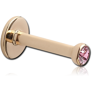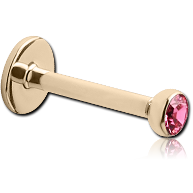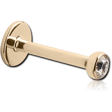 14 KARAT GOLD YELLOW INTERNALLY THREADED BEZEL SET PREMIUM CRYSTAL JEWELED MICRO LABRET