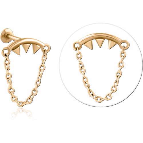 GOLD PVD 18K COATED SURGICAL STEEL GRADE 316L INTERNALLY THREADED MICRO LABRET WITH CHAIN