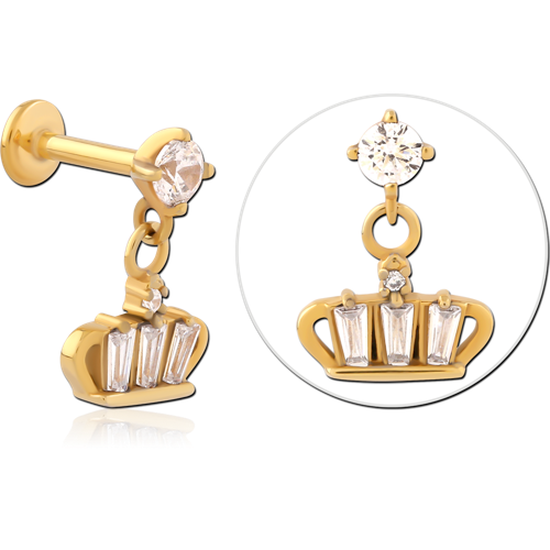 GOLD PVD COATED SURGICAL STEEL GRADE 316L INTERNALLY THREADED JEWELED MICRO LABRET SPECIAL NEW DESIGN