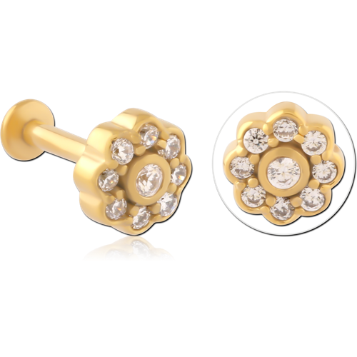 GOLD PVD COATED SURGICAL STEEL GRADE 316L INTERNALLY THREADED JEWELED MICRO LABRET