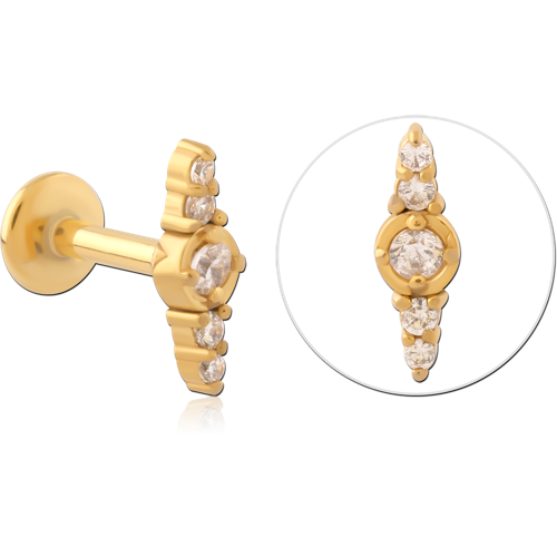 GOLD PVD COATED SURGICAL STEEL GRADE 316L INTERNALLY THREADED JEWELED MICRO LABRET