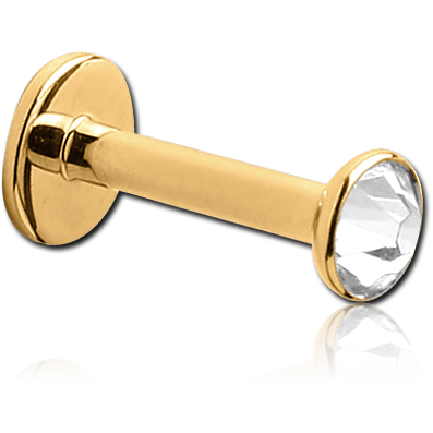 GOLD PVD COATED SURGICAL STEEL GRADE 316L INTERNALLY THREADED LABRET WITH JEWELED DISC