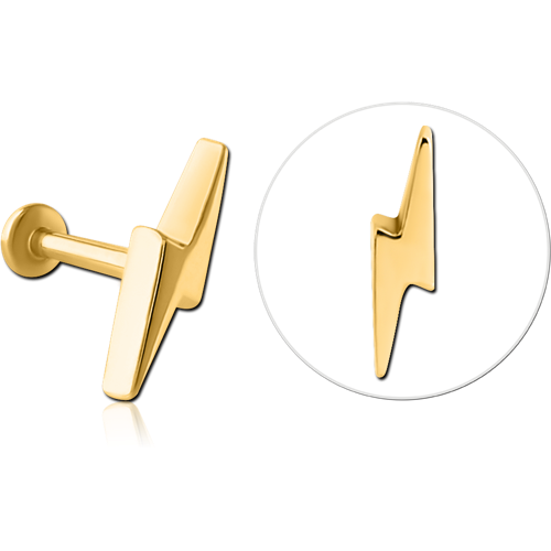 GOLD PVD COATED SURGICAL STEEL GRADE 316L INTERNALLY THREADED MICRO LABRET- LIGHTNING