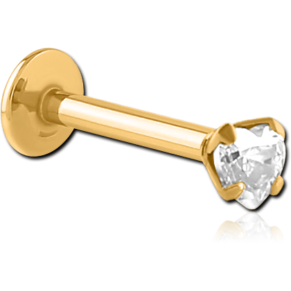 GOLD PVD COATED SURGICAL STEEL GRADE 316L INTERNALLY THREADED HEART PRONG SET JEWELED MICRO LABRET