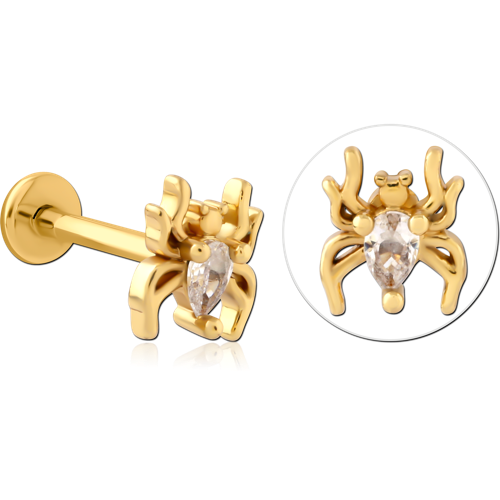 GOLD PVD COATED SURGICAL STEEL GRADE 316L MICRO LABRET WITH JEWELED ATTACHMENT SPECIAL NEW DESIGN