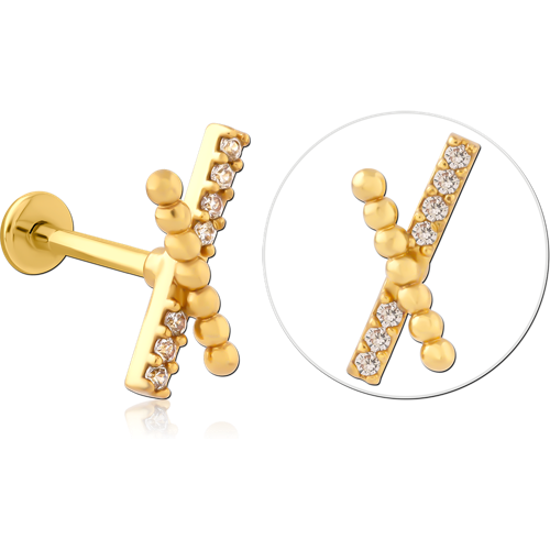 GOLD PVD COATED SURGICAL STEEL GRADE 316L MICRO LABRET WITH JEWELED ATTACHMENT SPECIAL NEW DESIGN