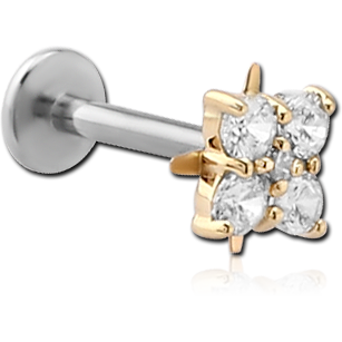 SURGICAL STEEL GRADE 316L INTERNALLY THREADED MICRO LABRET WITH 14K GOLD JEWELED - FLOWER