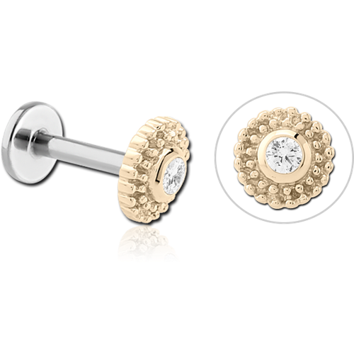 14 KARAT GOLD YELLOW JEWELED ATTACHMENT WITH SURGICAL STEEL INTERNALLY THREADED MICRO LABRET PIN