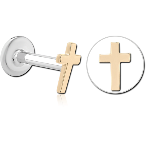 14 KARAT GOLD YELLOW ATTACHMENT WITH SURGICAL STEEL INTERNALLY THREADED MICRO LABRET PIN