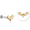 14 KARAT GOLD YELLOW ATTACHMENT WITH SURGICAL STEEL INTERNALLY THREADED MICRO LABRET PIN - BAT LEFT