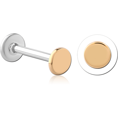 14 KARAT GOLD YELLOW ATTACHMENT WITH SURGICAL STEEL INTERNALLY THREADED MICRO LABRET PIN
