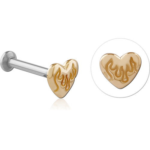 14 KARAT GOLD YELLOW ATTACHMENT WITH SURGICAL STEEL INTERNALLY THREADED MICRO LABRET PIN