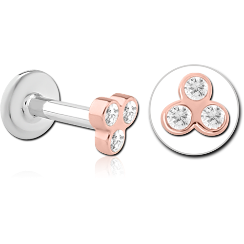 14K ROSE GOLD JEWELED ATTACHMENT WITH SURGICAL STEEL GRADE 316L INTERNALLY THREADED MICRO LABRET PIN -FLOWER