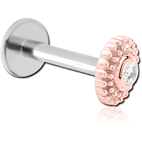 14K ROSE GOLD JEWELED ATTACHMENT WITH SURGICAL STEEL GRADE 316L INTERNALLY THREADED MICRO LABRET PIN