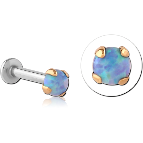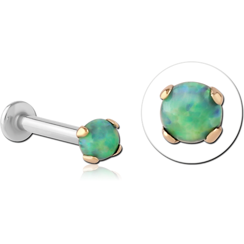 18 KARAT GOLD YELLOW SYNTHETIC OPAL ATTACHMENT WITH SURGICAL STEEL INTERNALLY THREADED MICRO LABRET PIN