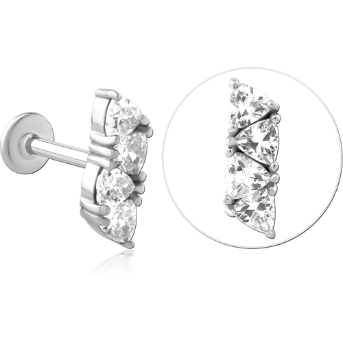 SURGICAL STEEL GRADE 316L INTERNALLY THREADED JEWELED MICRO LABRET