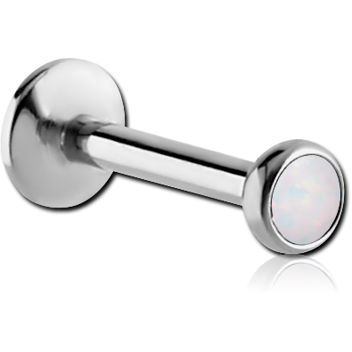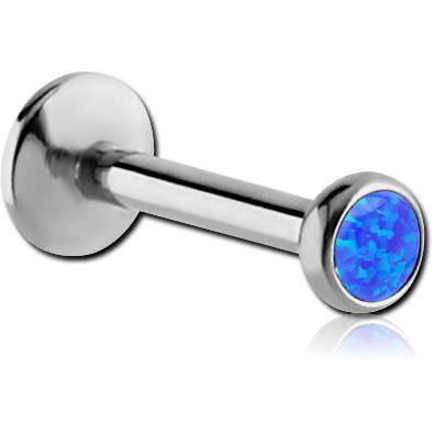 SURGICAL STEEL GRADE 316L INTERNALLY THREADED LABRET WITH ORGANIC SYNTHETIC OPAL JEWELED DISC