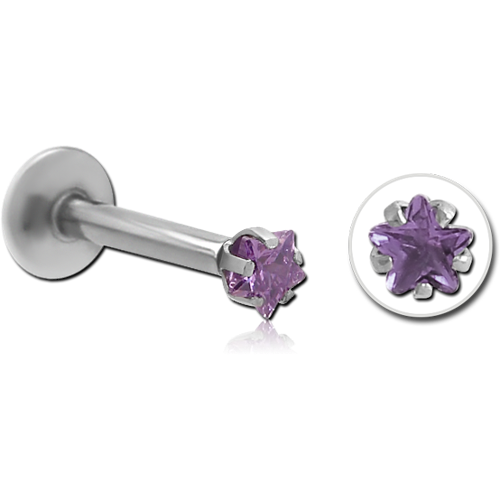 SURGICAL STEEL GRADE 316L INTERNALLY THREADED STAR PRONG SET JEWELED MICRO LABRET