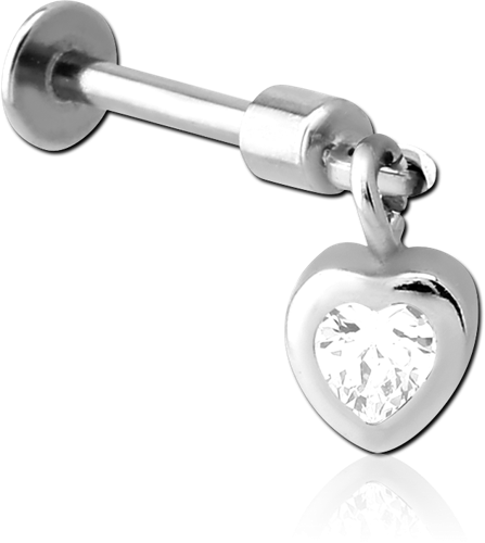 SURGICAL STEEL GRADE 316L TRAGUS MICRO LABRET WITH JEWELED CHARM - HEART