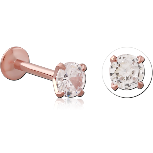 ROSE GOLD PVD COATED TITANIUM ALLOY INTERNALLY THREADED ROUND PRONG SET JEWELED MICRO LABET