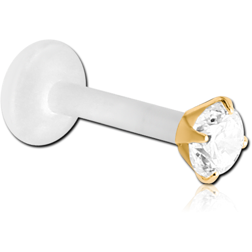BIOFLEX INTERNAL LABRET WITH GOLD PVD COATED SURGICAL STEEL GRADE 316L JEWELED ATTACHMENT - ROUND