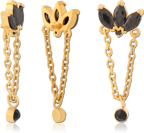 GOLD PVD CAOTED SURGICAL STEEL GRADE 316L JEWELED ATTACHMENT FOR 1.6MM INTERNALLY THREADED PINS