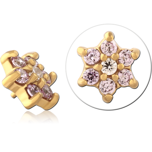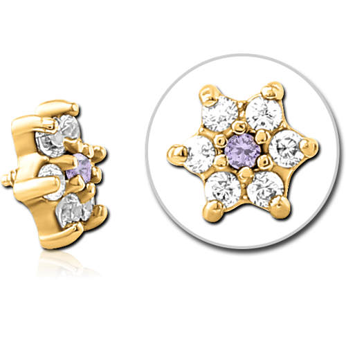 GOLD PVD COATED SURGICAL STEEL GRADE 316L JEWELED ATTACHMENT FOR 1.6MM INTERNALLY THREADED PINS - FLOWER