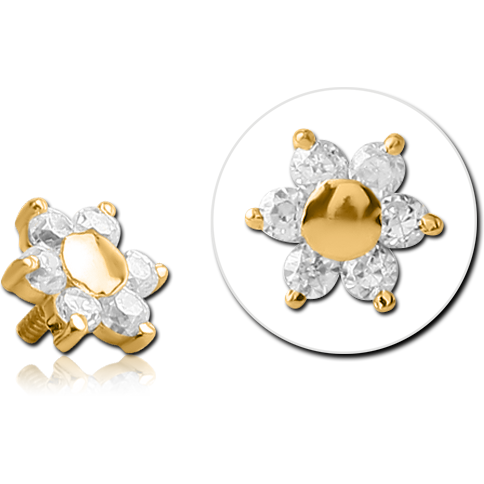 GOLD PVD COATED SURGICAL STEEL GRADE 316L JEWELED MICRO ATTACHMENT FOR 1.2MM INTERNALLY THREADED PINS - FLOWER
