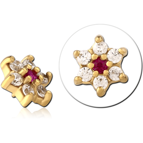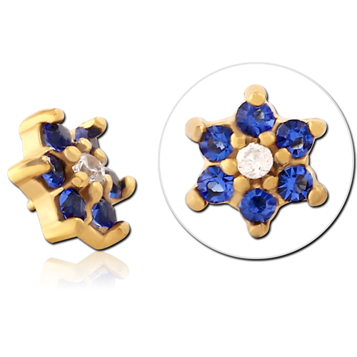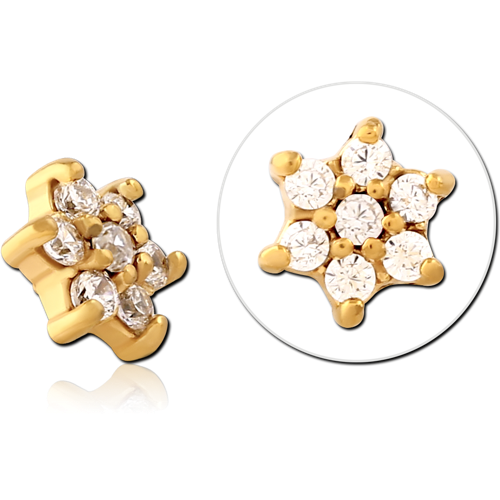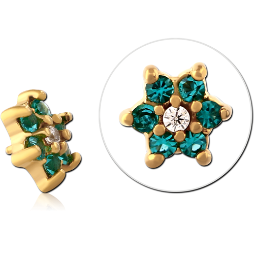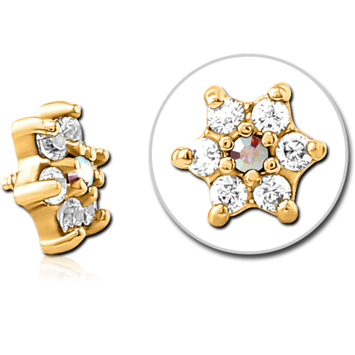 GOLD PVD COATED SURGICAL STEEL GRADE 316L JEWELED MICRO ATTACHMENT FOR 1.2MM INTERNALLY THREADED PINS - FLOWER