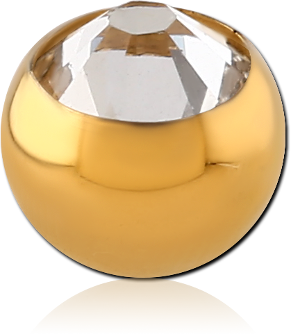 GOLD PVD COATED SURGICAL STEEL GRADE 316L FLAT STONE PREMIUM CRYSTAL JEWELED BALL