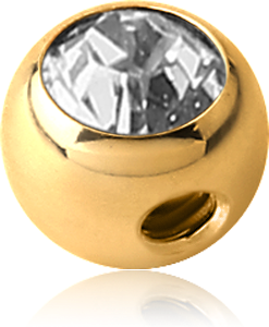 GOLD PVD COATED SURGICAL STEEL GRADE 316L SIDE THREADED PREMIUM CRYSTAL JEWELED BALL