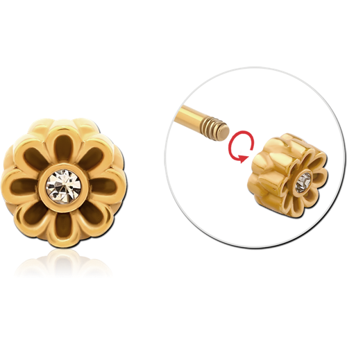 GOLD PVD COATED SURGICAL STEEL GRADE 316L JEWELED ATTACHMENT FOR 1.6 THREADED PINS