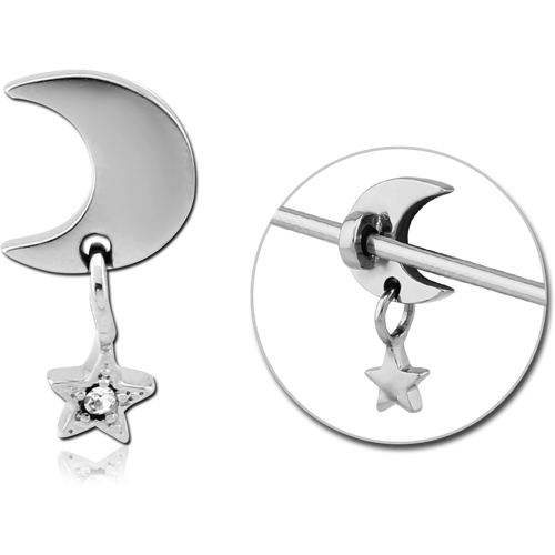 SURGICAL STEEL GRADE 316L ADJUSTABLE SLIDING CHARM FOR INDUSTRIAL BARBELL - MOON AND STAR