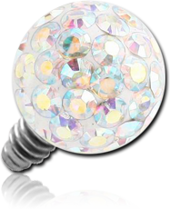 CLEAR EPOXY COATED CRYSTALINE JEWELED BALL FOR 1.6MM INTERNALLY THREADED PIN