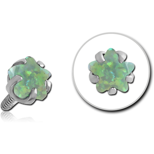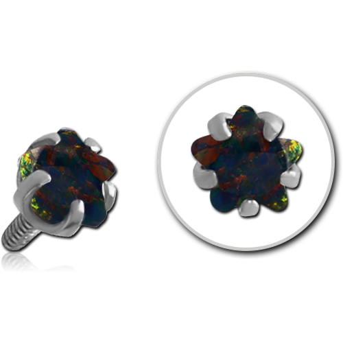 SURGICAL STEEL GRADE 316L STAR PRONG SET ORGANIC SYNTHETIC OPAL FOR INTERNALLY THREADED PINS