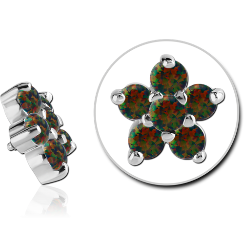 SURGICAL STEEL GRADE 316L ORGANIC SYNTHETIC OPAL JEWELED FLOWER ATTACHMENT FOR 1.2MM INTERNALLY THREADED PINS
