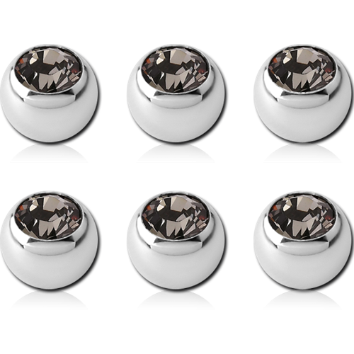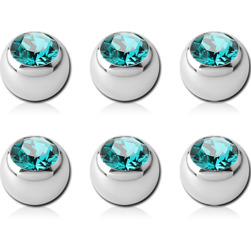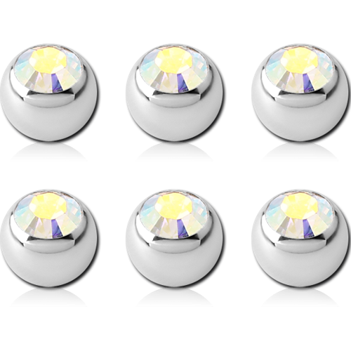 PACK OF 6 SURGICAL STEEL GRADE 316L PREMIUM CRYSTAL JEWELED BALLS