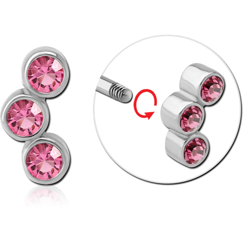 SURGICAL STEEL GRADE 316L MICRO THREADED TRIPLE JEWELED ATTACHMENT