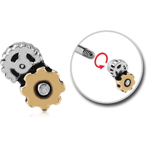 SURGICAL STEEL GRADE 316L MICRO THREADED STEAMPUNK ATTACHMENT WITH BASE METAL PART