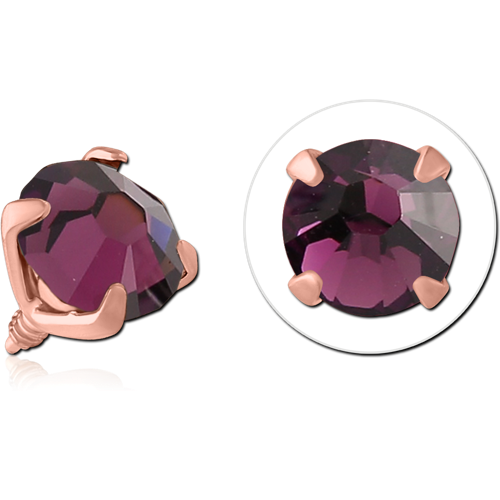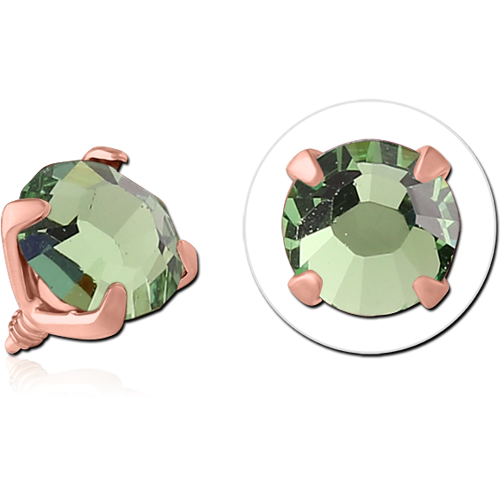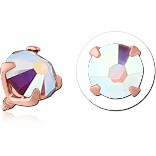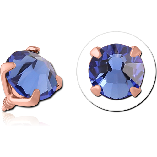 ROSE GOLD PVD COATED SURGICAL STEEL GRADE 316L ROUND PRONG SET JEWELED FOR 1.2MM INTERNALLY THREADED PINS