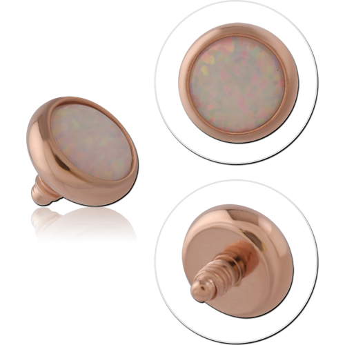 ROSE GOLD PVD COATED TITANIUM ALLOY SYNTHETIC OPAL JEWELED DISC FOR 1.6MM INTERNALLY THREADED PINS