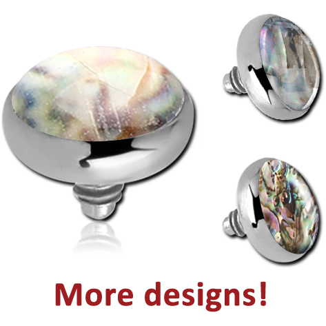 TITANIUM ALLOY INTERNALLY THREADED ORGANIC SYNTHETIC MOTHER OF PEARL DISC