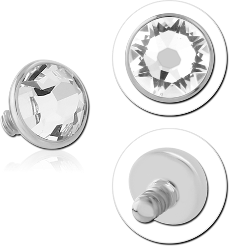 14 KARAT GOLD WHITE PREMIUM CRYSTAL JEWELED DISC FOR 1.6MM INTERNALLY THREADED PINS