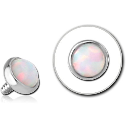 14 KARAT GOLD WHITE SYNTHETIC OPAL JEWELED DISC FOR 1.2MM INTERNALLY THREADED PINS
